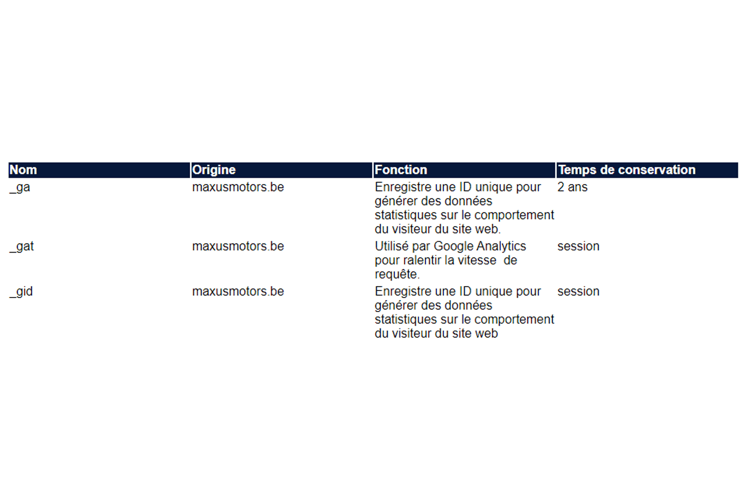 Avec votre consentement, nous pouvons collecter et traiter des informations techniques telles que des cookies et des technologies similaires que nous décrivons dans notre politique cookie de Maxus et utiliser vos données à caractère personnel pour le marketing par email et SMS. En principe, vous pouvez révoquer ce consentement à tout moment. Cela s’applique également à la révocation de déclarations de consentement qui nous auraient été remises avant l’entrée en vigueur du RGPD, à savoir avant le 25 mai 2018. Vous devez être informé expressément des conséquences d’une révocation ou d'un refus de consentement dans le texte de la déclaration de consentement.