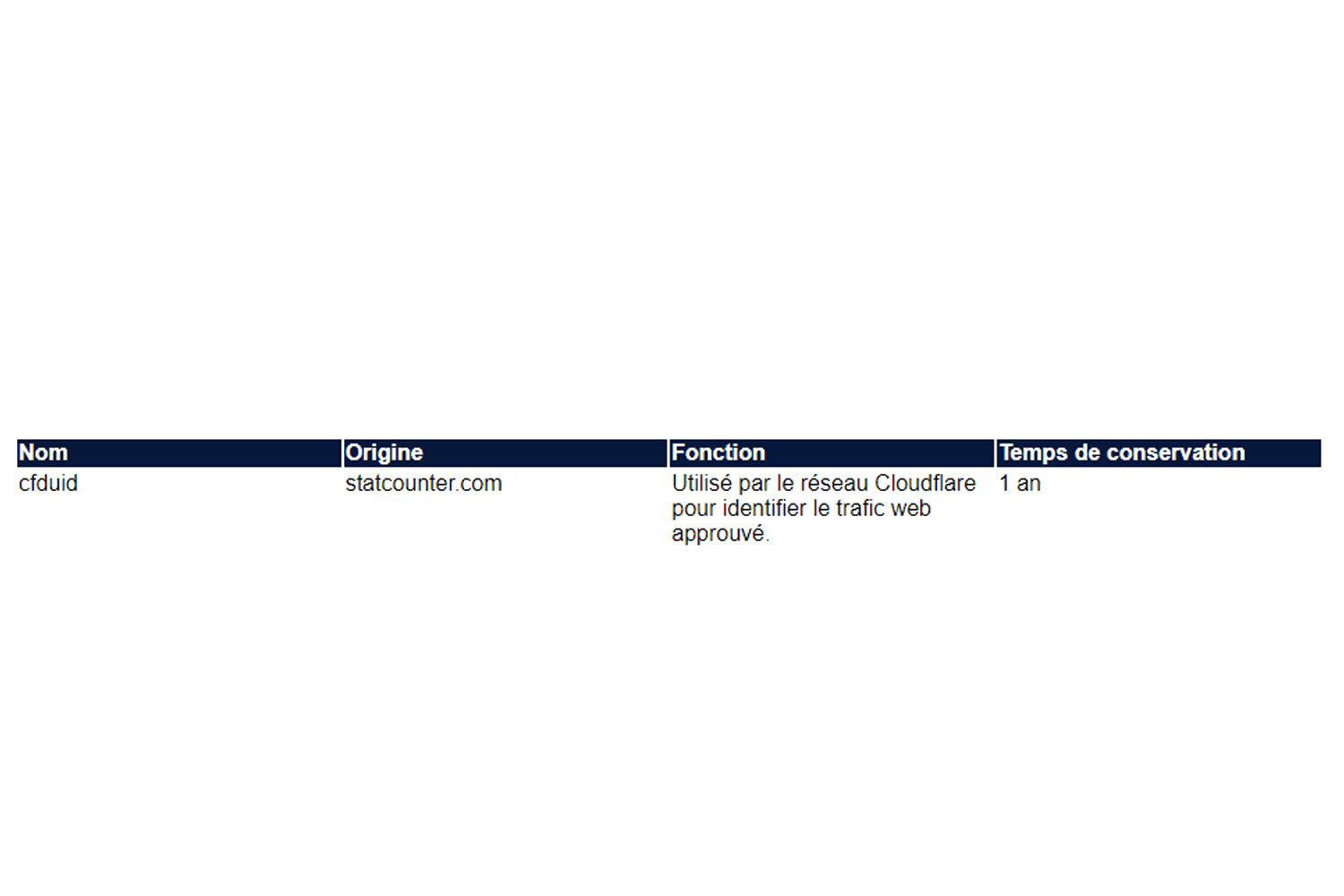 8.2 Cookies non fonctionnels
